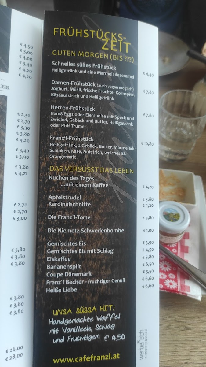 With a team of friendly staff, FRANZL promises a cozy atmosphere that invites you to relax and unwind. The lack of stress when it comes to parking is an added bonus! Whether you’re stopping by for a quick coffee or a leisurely meal, this café offers something for everyone – a true retreat for the body and soul.